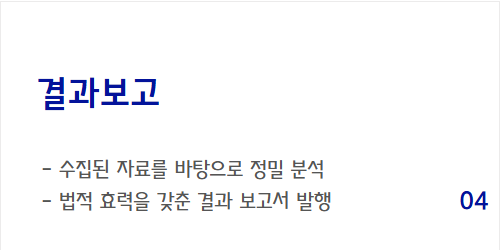 ⑤ 개인정보 수집 및 이용 목적 : “법률정보조사원”은 다음의 목적을 위해 개인정보 등을 포함하여 서비스로부터 수집된 정보를 이용자가 다른 수단을 통해 “법률정보조사원”에 제공한 정보와 결합시킬 수 있으며, 수집한 개인정보는 다음의 목적 이외의 용도로는 사용되지 않으며 이용 목적이 변경될 시에는 사전 동의를 구할 예정입니다.